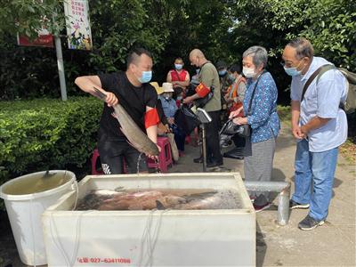 正在排隊的趙女士家住磁湖邊上,最近幾年她感受到磁湖的環(huán)境越來越好。她說,我昨天在這里買了一條花鰱,煮出來的魚湯特別白,魚肉也很鮮美。“現(xiàn)在磁湖的魚好吃,今天特意來買幾條鯽魚,回家做紅燒鯽魚吃。”