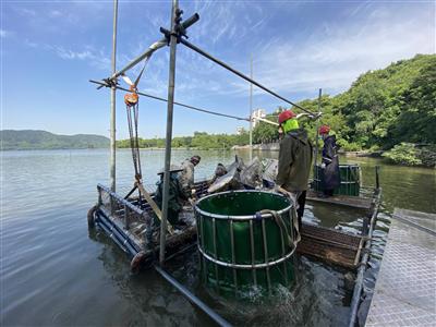 如今,磁湖從傳統(tǒng)經(jīng)濟養(yǎng)殖方式逐步向新型“人放天養(yǎng)”生態(tài)保水養(yǎng)殖方式轉(zhuǎn)變,磁湖水質(zhì)逐年改善,“以魚養(yǎng)水”效果初步顯現(xiàn)。黃德銘說,磁湖中放養(yǎng)的白鰱、紅鰱需要控制總量,為此,每年都會在4月底5月初以及10月份進行2次捕撈,但隨著魚產(chǎn)量的降低,近兩年都是每年進行一次捕撈。