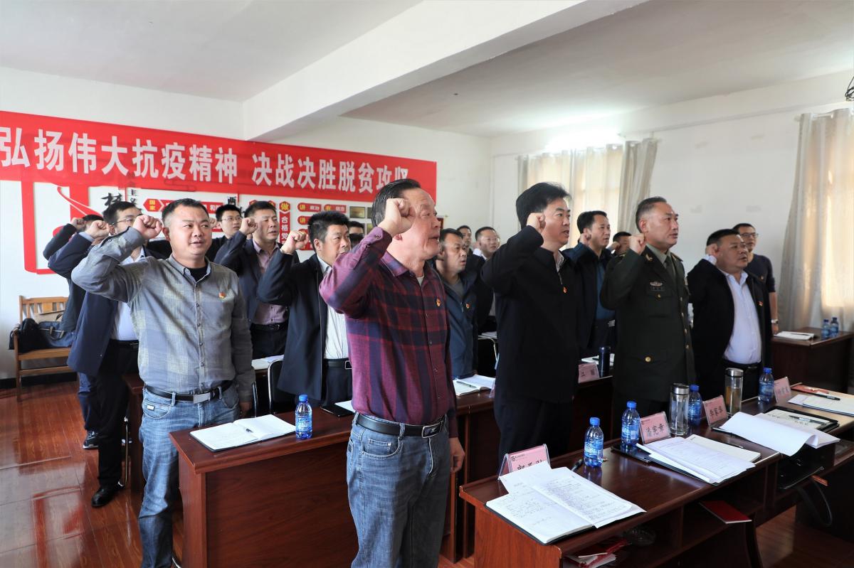 會議集中學習了新華社特稿《習近平指揮中國戰(zhàn)貧》、習近平總書記在基層代表座談會上的重要講話精神,誦讀了黨章關于黨的基層組織八項基本任務的要求,集體重溫了入黨誓詞。