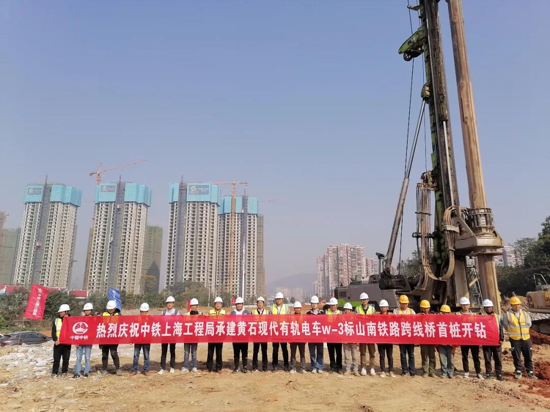 7日上午9時(shí),在開發(fā)區(qū)·鐵山區(qū)百花南路舒家咀路段,已完成平整的土地上,高高的旋挖鉆緩緩鉆向地面,打出山南鐵路跨線橋首根樁基首鉆,這也是黃石現(xiàn)代有軌電車項(xiàng)目建設(shè)中首個(gè)橋開鉆的第一根樁。