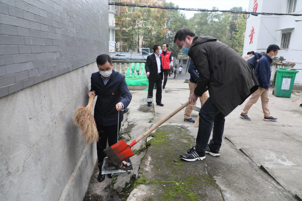 集中學習結束后,參會黨員、下沉社區(qū)工作隊員先后開展了社區(qū)衛(wèi)生環(huán)境大清掃及入戶走訪。