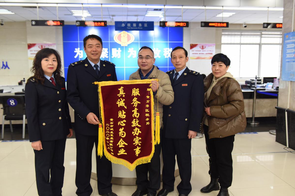 12月16日上午,城發(fā)置業(yè)(停車、教育)公司總經(jīng)理程勇向黃石港區(qū)稅務(wù)局送去一面錦旗,感謝黃石港區(qū)稅務(wù)局幫助公司享受增值稅期末留底稅額退稅優(yōu)惠政策,實現(xiàn)退稅590萬元。