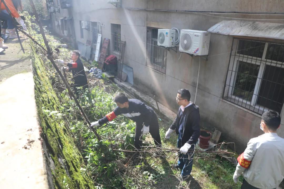 此次活動重點整治南岳社區(qū)背街小巷衛(wèi)生死角,大家精神飽滿、干勁十足,一到社區(qū)就迫不及待地帶上手套,扛起鐵鍬,拿起鐮刀,對社區(qū)衛(wèi)生死角進行“地毯式”清理。依山而建的住房后巷是難點區(qū)域,潘憲章同志帶頭爬梯到擋土坡下進行清理。三米多高的距離、狹窄的走道,坡下堆放的建筑垃圾、丟棄的雜物、叢生的雜草以及排水溝垃圾等只能依靠人工清運。大家不怕臟、不怕苦、不怕累,經(jīng)過一上午的齊心協(xié)力,共清理衛(wèi)生死角400余平方,清理垃圾雜物5車,有效解決了影響社區(qū)環(huán)境衛(wèi)生的突出問題,為居民群眾營造了一個干凈有序整潔的居住環(huán)境。