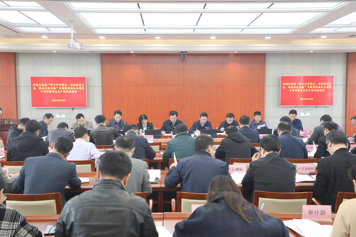 2021年4月10日上午,城發(fā)集團(tuán)“學(xué)習(xí)百年黨史、汲取奮進(jìn)力量、促進(jìn)安全發(fā)展”專題讀書班和主題黨日活動(dòng)暨安全生產(chǎn)培訓(xùn)座談會(huì)在五樓會(huì)議室舉行,集團(tuán)領(lǐng)導(dǎo)班子、直屬二級(jí)單位及部分三級(jí)單位負(fù)責(zé)人、機(jī)關(guān)支部全體黨員參加會(huì)議。
