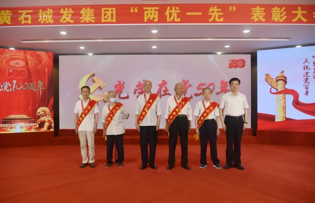一朝入黨,一生為黨。黨徽、五角星、旗幟等元素交相輝映,“光榮在黨50年”字樣熠熠生輝。大會(huì)現(xiàn)場(chǎng),集團(tuán)黨委書(shū)記、董事長(zhǎng)潘憲章為王明林、程良清、劉成久、楊尚榮、李開(kāi)唐等5名老黨員代表頒發(fā)“光榮在黨50年”紀(jì)念章,并向城發(fā)集團(tuán)59名“光榮在黨50年”老黨員表示崇高敬意。