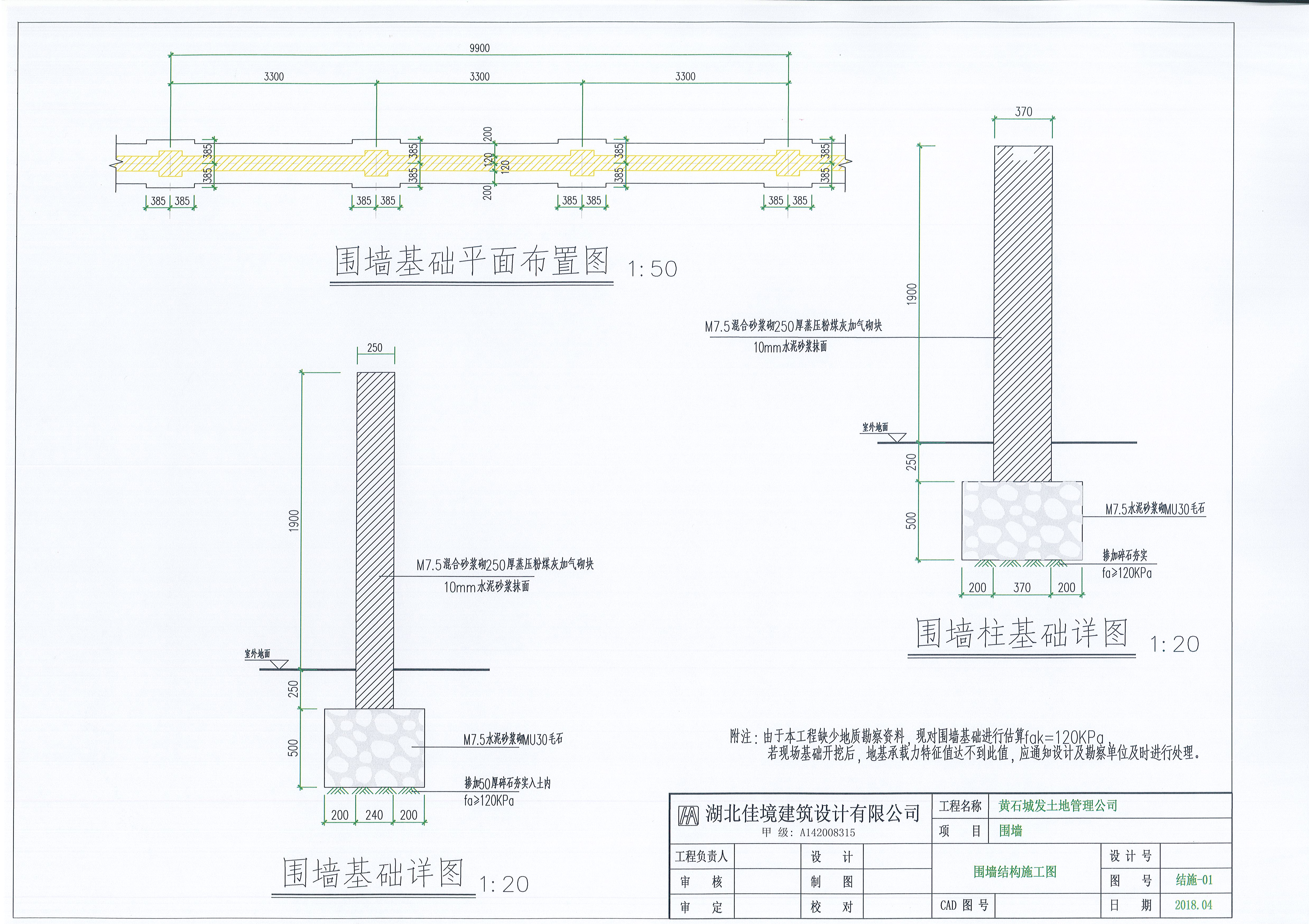 1、施工圖紙:《圍墻基礎(chǔ)平面布置圖》;
