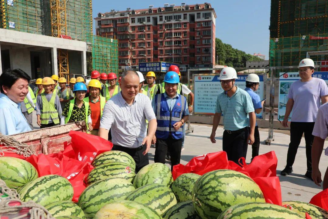 炎炎夏日,為關(guān)心高溫下堅守在一線崗位的工作人員,8月2日至4日,黃石城發(fā)集團開展高溫慰問活動,集團班子成員帶隊分別前往公交軌交場站、污水處理廠等集團重點生產(chǎn)單位和未蘇灣、水云方、磁湖大橋、桂林南路立交等重點工程一線,為一線人員送上西瓜、綠豆、礦泉水等防暑降溫物資,向高溫堅守一線工作人員表示感謝,并叮囑大家做好防暑降溫措施,立足崗位積極工作,為黃石經(jīng)濟社會發(fā)展作出應(yīng)有貢獻。