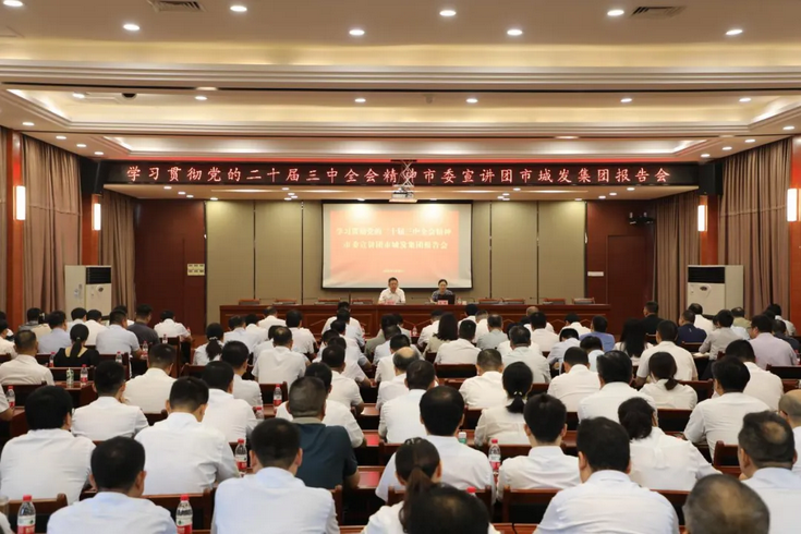 按照市委統(tǒng)一安排部署,9月30日,市城發(fā)集團(tuán)舉行學(xué)習(xí)貫徹黨的二十屆三中全會(huì)精神宣講報(bào)告會(huì)。市委黨校經(jīng)濟(jì)教研室主任、市委宣講團(tuán)成員唐敏教授作宣講報(bào)告,集團(tuán)黨委書記、董事長(zhǎng)程正棟主持會(huì)議并講話。